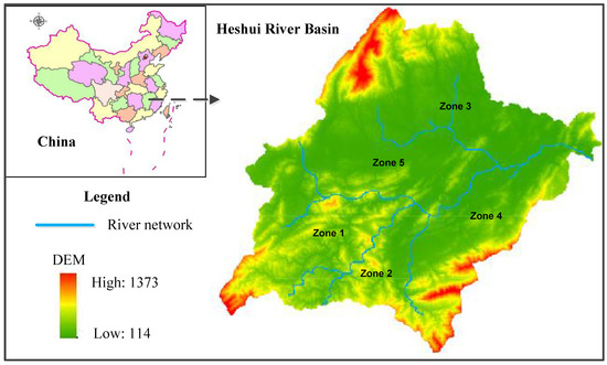 Yongxin, a county of Jiangxi Province, is located in the southeast part of China (as shown in Figure 1). It ranges in longitude from 113.83° E to 114.31° E, and in latitude from 26.78° N to 27.23° N. It occupies a total area of around 2194.57 km2, and the majority of the county (i.e., approximately 1800 km2) lies within the middle reaches of the Heshui River Basin [31]. The basin features subtropical monsoon humid climatic conditions (abundant rainfall and sunlight, and long frost-free periods) with an average annual precipitation of 1530.7 mm and an average annual temperature of 18.2 °C. The Heshui River has a total length of 225 km, with 77 km flowing within the borders of Yongxin County from west to east. The county mainly relies on the Heshui River to support its agriculture, industry, livestock husbandry, forestry, and fishery [32].