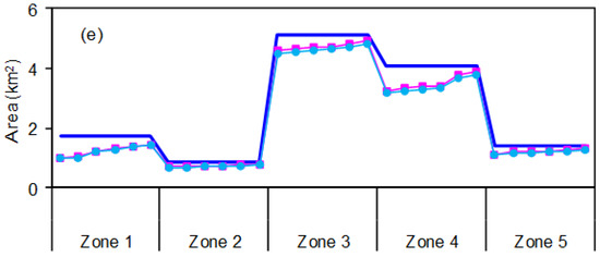 Optimal target and standard production scale of each activity. (a) Agriculture; (b) Livestock husbandry; (c) Industry; (d) Forestry; (e) Fishery.