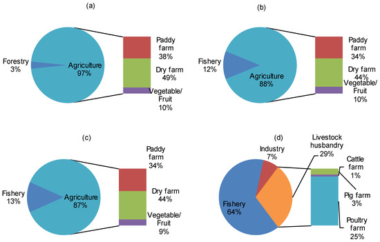 | i | index for economic activities; for agricultural activities, i = 1, 2, …, Ia; for fishery activities i = 1, 2, …, If (e.g., fish and prawn farming); for livestock husbandry activities i = 1, 2, …, Il; for industrial activities i = 1, 2, …, Ii (e.g., manufacturing, mining, architecture, transportation and others); for forestry activities i = 1, 2, …, Iw |