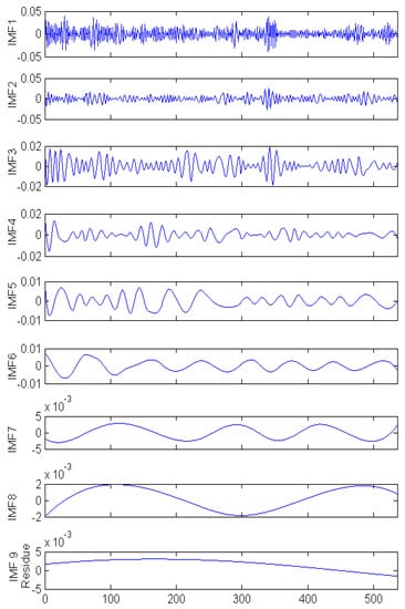 - Huang, N.E.; Shen, Z.; Long, S.R.; Wu, M.C.; Shih, H.H.; Zheng, Q.; Yen, N.-C.; Tung, C.C.; Liu, H.H. The empirical mode decomposition and the Hilbert spectrum for nonlinear and non-stationary time series analysis. In Proceedings of the Royal Society of London A: Mathematical, Physical and Engineering Sciences, London, UK, 8 March 1998; Volumn 454, pp. 903–995. [Google Scholar]