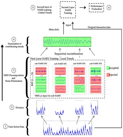 - Afolabi, D.O.; Guan, S.-U.; Man, K.L.; Wong, P.W.H. Meta-learning with Empirical Mode Decomposition for Noise Elimination in Time Series Forecasting. In Advanced Multimedia and Ubiquitous Engineering: FutureTech & MUE; Park, J.J.H., Jin, H., Jeong, Y.-S., Khan, M.K., Eds.; Springer Singapore: Singapore, 2016; pp. 405–413. ISBN 978-981-10-1536-6. [Google Scholar]