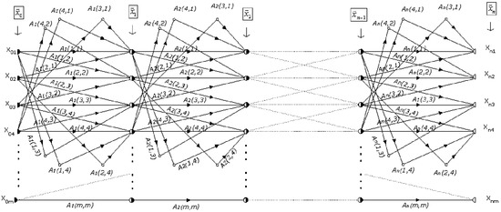 Thus, for a m × n cascade graph, there are mn−1 paths connecting an output node with an input one. These paths that start from an input node x0k and ends at an output node xnL, have the path ordinals i = k + (L − 1)mn, k + m+ (L − 1)mn, …, k – m + Lmn.