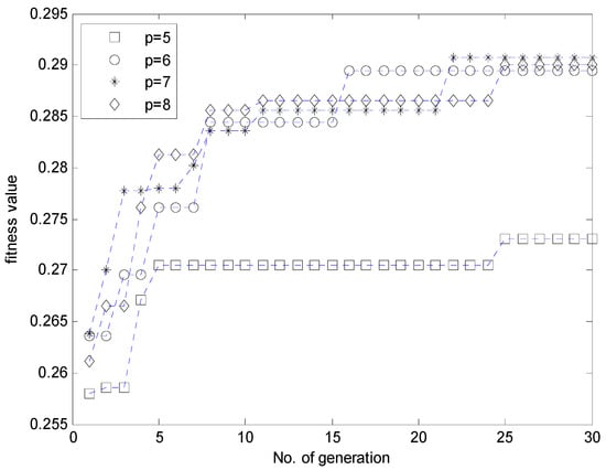 - Evaluate the fitness value for each individual for the fitness function. The GA simultaneously performs a parallel search through the populations, with the number of different contexts ranging from five to eight. Thus, the number of parameters to be optimized varies for each population.