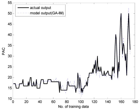 The field test data for this process was obtained at the AMSA water purification plant, Seoul, Korea, with a water purification capacity of 1,320,000 ton/day. We used 346 successive samples from jar-test data during one year. The input variables are composed of the turbidity of the raw water, temperature, pH, and alkalinity. The output variable is PAC (poly-aluminum chloride), widely used as a coagulant in water purification plants. We divided the data sets into training and checking data sets to evaluate the resultant model. In this experiment, we used 173 training data pairs for the model design of the GA-based IGM, while the remaining testing data sets were used for model evaluation.