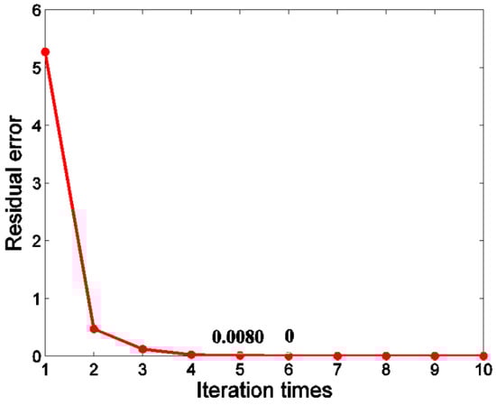 Change curve of residual error against iterating times.