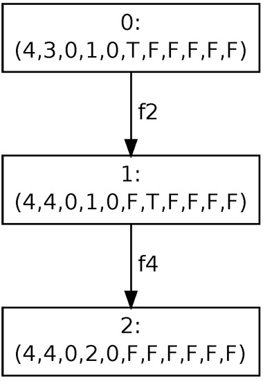 - Cavada, R.; Cimatti, A.; Dorigatti, M.; Griggio, A.; Mariotti, A.; Micheli, A.; Mover, S.; Roveri, M.; Tonetta, S. The nuXmv Symbolic Model Checker. In Computer Aided Verification; Lecture Notes in Computer Science; Springer: Berlin, Germany, 2014; Volume 8559, pp. 334–342. [Google Scholar]