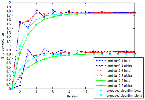 Nash equilibrium strategy under different adjustment factors and the proposed algorithm in the paper.