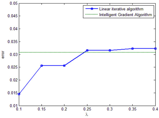 Figure 5 presents the error performance analysis of the Nash equilibrium strategy obtained between the proposed intelligent gradient iteration algorithm and linear iteration algorithm, from which we can see that when adjustment factor is small, the price strategy error of linear iteration algorithm becomes small as well; with increase of adjustment factor, the error between linear iteration algorithm and intelligent gradient iteration algorithm proposed in the paper is close.