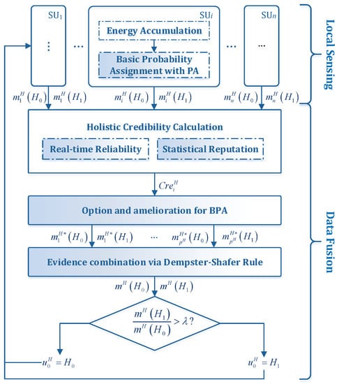 Therefore, in this paper, we propose a robust CSS scheme based on D-S evidence theory and credibility calculation. It is executed in four consecutive procedures, which are basic probability assignment (BPA), holistic credibility calculation, option and amelioration of BPA and evidence combination via the Dempster–Shafer rule, respectively. The major contributions of this paper can be summarized as follows: