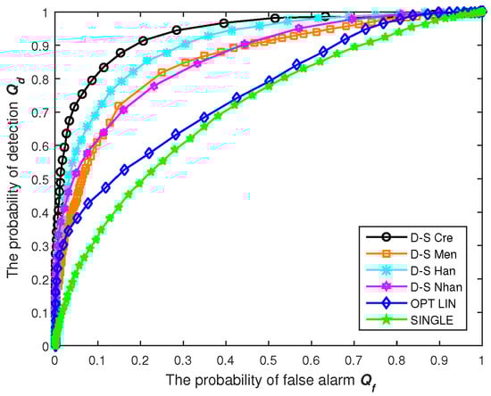13] have put forward an optimal linear CSS method, which makes the final decision over a linear weighted combination of the local measurements. The computational complexity has been reduced, and the performance compared favorably with LRT-based optimal fusion rules, which can be achieved, as well; but the DFC requires specific report channels to acquire and update a priori information. In recent years, plenty of algorithms have been proposed owing to the unique advantages of the Dempster–Shafer (D-S) theory of evidence in terms of uncertainty representation [
