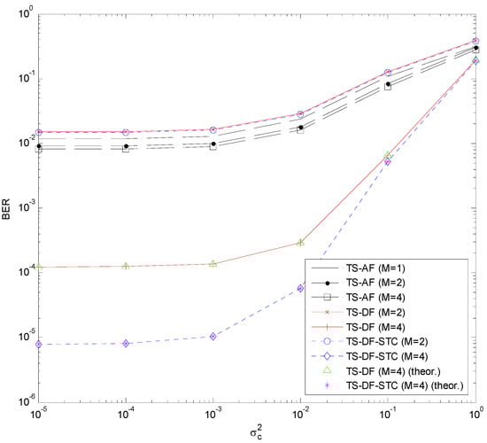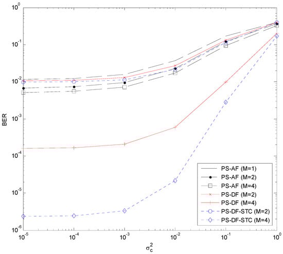 Following the same procedure as in (9), the average BER associated with is obtained as: