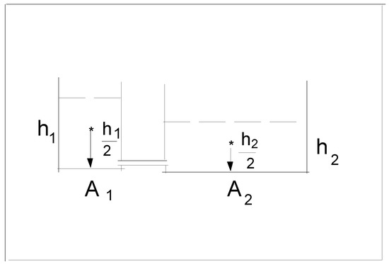 We pour volume of water into two vessels with basis areas and , respectively. The problem is to find the heights and of the water in each vessel (see Figure 1) in the equilibrium state. The problem can be easily solved by applying the least potential energy principle. In the final state, the water is divided between the two vessels as such that their potential energy is minimal.