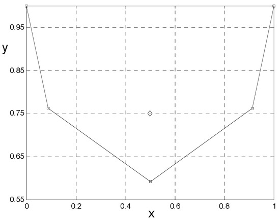 and the symmetry, i.e., , solves the problem as shown in Figure 6.