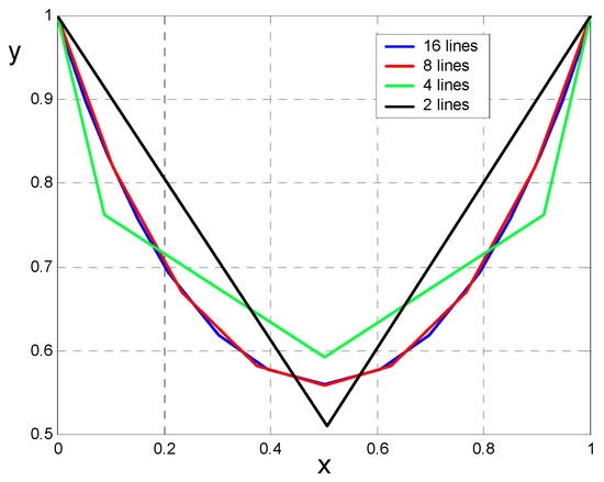 and , . In order we have to find minimum points of function of variables and again it can be done only with appropriate software. Figure 9 shows the successive solutions of the discrete chain up to the fourth order.