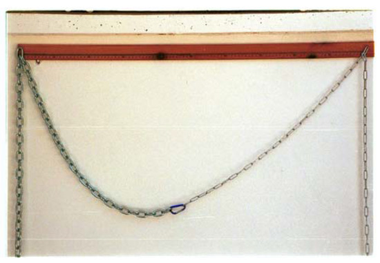 The problem was posed explicitly for the first time by James Bernoulli in 1690, when he asked to find the curve assumed by a flexible chain which hangs freely, fixed between two points [8,9,10,11]. Galileo was the first to investigate the catenary, which he mistook for parabola. The correct solution, which is given by hyperbolic cosine was found independently by the great mathematicians of that era, Huygens, Leibnitz and the Jhon Bernoulli the brother of James. The name catenary was first used by Huygens in a letter to Leibnitz in 1690. Any uniform cable or chain, which is subject to its own weight, describes a catenary as shown in Figure 1.