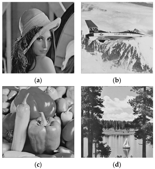 Figure 8. Test images used for the simulation (a) Lena; (b) Jet; (c) Peppers; and (d) Sailboat [24].
