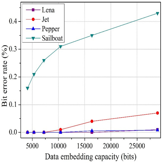 GtEmbedded BitsEmbedding Rate (bpp)Bit Error Rate