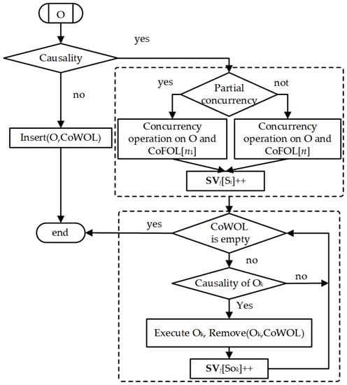 - Both operations are executed and ranked according to dependency priority. In Si, there is OaOb. In Sj, first execute an undo operation to Ob, then execute Oa, finally redo Ob. When we redo Ob, it may be not executable because of Oa. In this situation, Ob needs to be abandoned. So, the final order of operations is OaOb or Oa and the result is Result(OaOb) or Result(Oa).