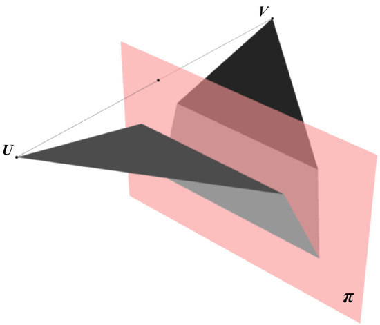 Object Definition 1 refers to two orthogonal planes of symmetry. In this case, Equation (1) is true for each plane of symmetry, and furthermore, the planes of symmetry are orthogonal to each other. Planes and are orthogonal to each other if, and only if, the respective directions of symmetry are orthogonal to each other.