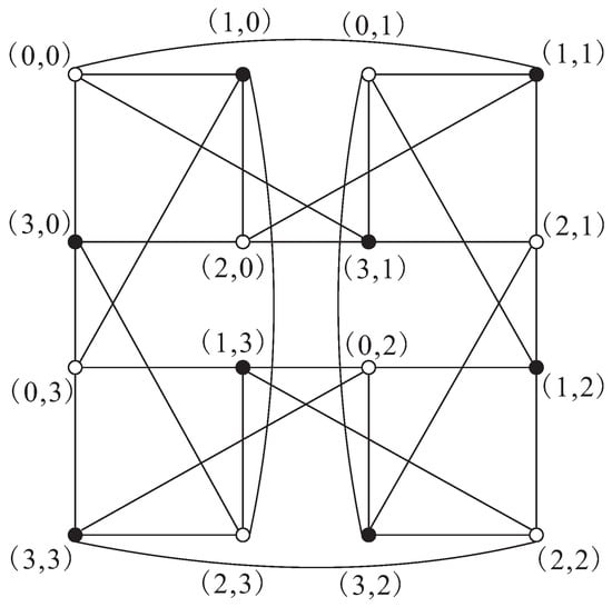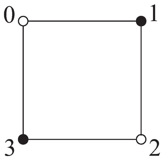By Proposition 1, we know that is bipartite. We can use and to denote the two partite sets of such that and consist of vertices of with an even inner index and an odd inner index, respectively. For convenience, the vertices of and are colored white and black, respectively. Throughout this paper, we use and (resp. and ) to denote white (resp. black) vertices in ().
