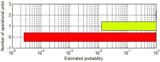 Estimated probability of operational units of the framework is illustrated in Figure 10 below. This horizontal bar graph is actually the inverse of the graph for combined availability, as shown in Figure 7 above. In this case, the estimated probability for both the units of the framework to be operational is .