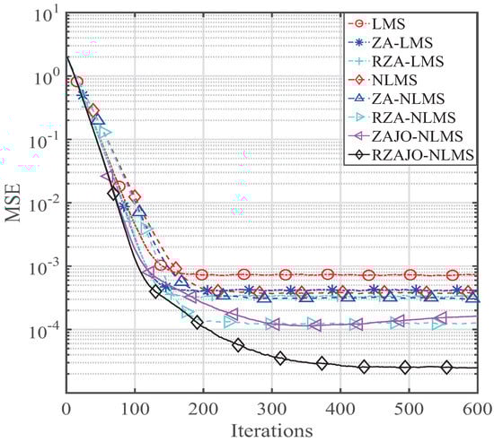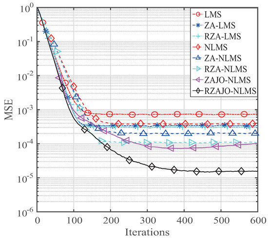 - Benesty, J.; Rey, H.; ReyVega, L.; Tressens, S. A nonparametric VSS-NLMS algorithm. IEEE Signal Process. Lett. 2006, 13, 581–584. [Google Scholar] [CrossRef]