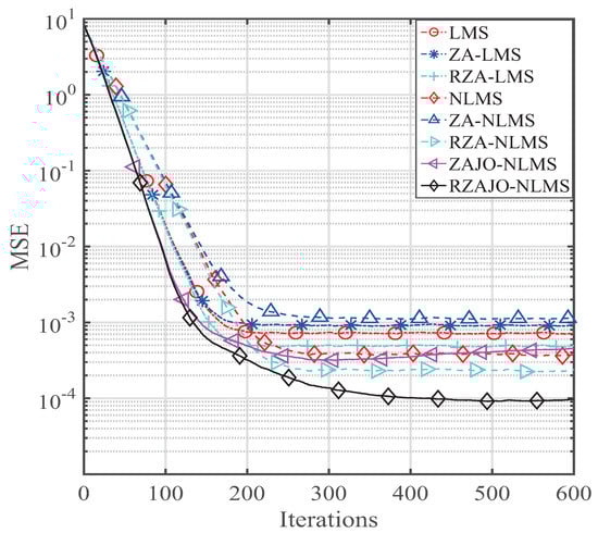 - The behaviors of the proposed ZAJO-NLMS and RZAJO-NLMS algorithms are evaluated for estimating sparse channels.