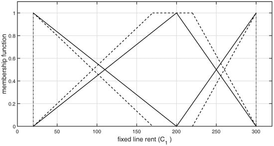 Initially, suppose each alternative is assessed by all DMs by means of n criteria in the form of a single family of TFNs with their fuzzy semantics shown in Figure 1, Figure 2, Figure 3, Figure 4, Figure 5 and Figure 6. Suppose each DM further provides the hesitant information of an alternative for each criterion in the form of L-R-type GFNs. Note that, in this method, the observations already provided by all of the DMs for each criterion in the form of the single family of TFNs set is a necessary part of all of the family of the remaining L-R-type GFNs set during the computation. The core of each criterion is defined as the core of each i.e.,
