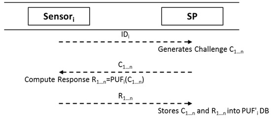 - SP received with Response R1…n from Sensori maps C1…n and Response R1…n in 1:1 and stores them in the PUFi DB for a challenge-response with Sensori in the future.