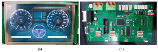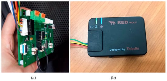 To communicate between the CAN bus module and data transmission module, a Universal Asynchronous Receiver/Transmitter (UART) is used. Communication between the data transmission module and server is performed through 4G-LTE. Additionally, vehicle information, e.g., RPM, speed, gear, brake status, etc., can be visually checked by the developed software shown in Figure 7a. Development of the CAN bus module and PC software is based on C, IAR Embedded Workbench for ARM (IAREWARM) (IAR Systems, Uppsala, Sweden), and Visual C++ using MS Visual Studio 2010 (Microsoft Corporation, Redmond, WA, USA). Actual testing was conducted, and we confirmed that all the information was successfully received through our developed modules. Figure 7 and Figure 8 show our actual deliverables.