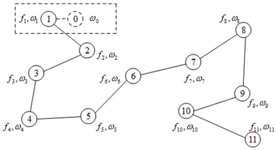 Without loss of generality, we assume that is the lth component of the dual vector ; i.e., . Recalling the definition of coefficient matrices A and , we can obtain that: if is connected to node i. In addition, node s and node j belong to the same level; if is connected to node i and node s and node j belong to different levels. Then, we have
