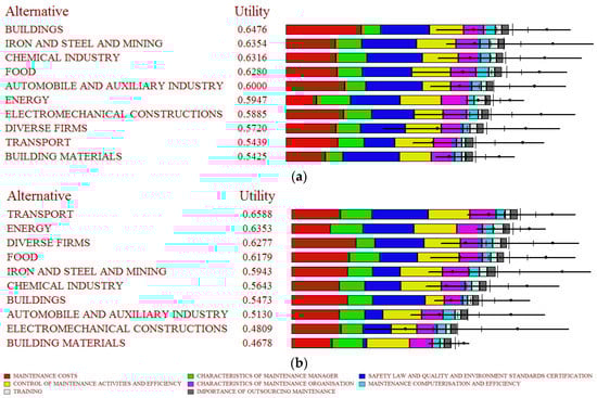 Kubler et al. [34] note in their survey that Chang’s extent analysis method is the most popular methodology in spite of a number of criticisms in recent years. Criticisms relate to the appearance of irrational zero weights and the fact that important criteria could not be considered in the decision-making process [43]. Therefore, the relative importance of criteria or alternatives is not calculated appropriately, which may lead to poor robustness, unreasonable priorities and information loss in the models. The research presented in this paper applies the geometric-mean method suggested by Buckley [44], because of its ease of application and comprehension in comparison with other methods [45] and it provides a unique solution to the reciprocal comparison matrix [46], avoiding the criticisms applicable to Chang’s extent analysis. It also uses a different means of obtaining the utility functions from the previous literature. That is because the utility functions are associated to attributes with constructed descriptors that have from two to ten qualitative scale levels, depending on the attribute. The data available via surveys of maintenance questions allow a probability to be associated with each scale level of a descriptor. MAUT [47] allows scores to be turned into utility functions if the sum of the weighting is unity. Therefore, this research does not use a decision maker to find the probability value such that there is no difference between two choices, as for example in [38] since the probabilities are calculated from the surveys. In these cases, the utility function is constructed form the mean value and in the current study the full data are used, without mean values.