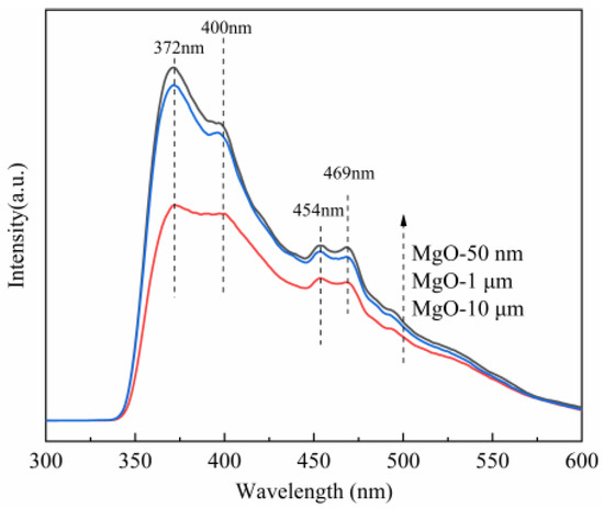 Photoluminescence spectra of three kinds of MgO with different particle sizes.