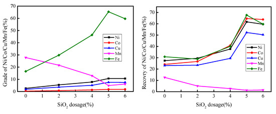 Effect of SiO2 dosage on the concentration of valuable metals.