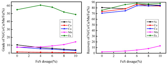 Effect of FeS dosage on the concentration of valuable metals.