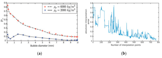 (a) Bubble–particle collision probability, Pc, versus bubble diameter, (b) prediction absolute error versus number of interpolation points [158].