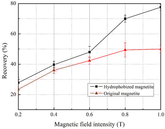 - Gray, S.R.; Langberg, D.E.; Gray, N.B. Fine mineral recovery with hydrophobic magnetite. Int. J. Miner. Process. 1994, 41, 183–200. [Google Scholar] [CrossRef]