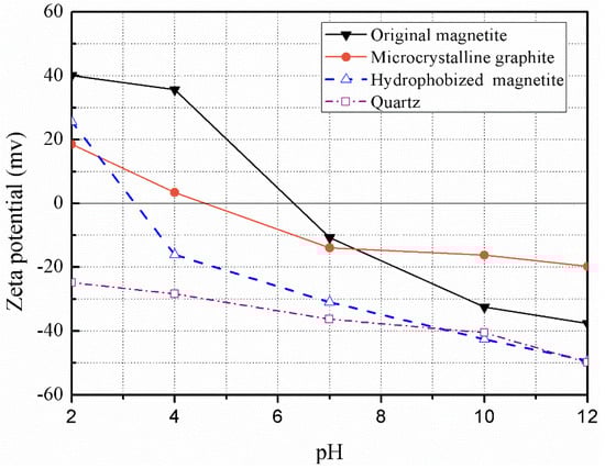 - Liang, L.; Zhang, T.; Peng, Y.; Xie, G. Inhibiting heterocoagulation between microcrystalline graphite and quartz by pH modification and sodium hexametaphosphate. Colloids Surf. A Physicochem. Eng. Asp. 2018, 553, 149–154. [Google Scholar] [CrossRef]