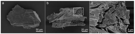 The scanning electron microscopy investigation of the bentorite crystal after the HT XRD experiment was performed using a Jeol JSM-6010LV (Institute of Mineralogy and Petrography, University of Innsbruck, Innsbruck, Austria). The sample was Au sputtered, and the measurements were performed at high vacuum, with an acceleration voltage of 10 kV and a working distance of 43 mm.