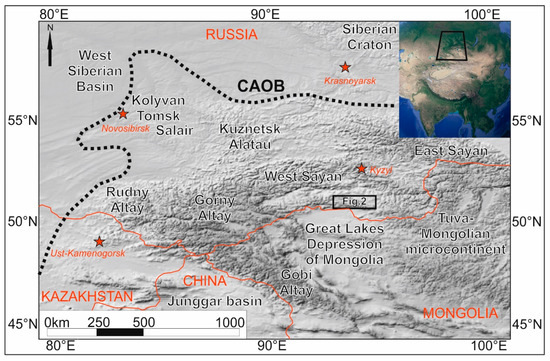 1. Babin, G.A.; Shokalsky, S.P. Major geological features of the Altai–Sayan Folded Region (tectonic zoning, stratigraphy, magmatism, geological evolution). Geol. Miner. Resour. Sib. 2017, 6c, 19–37. (In Russian) [Google Scholar]