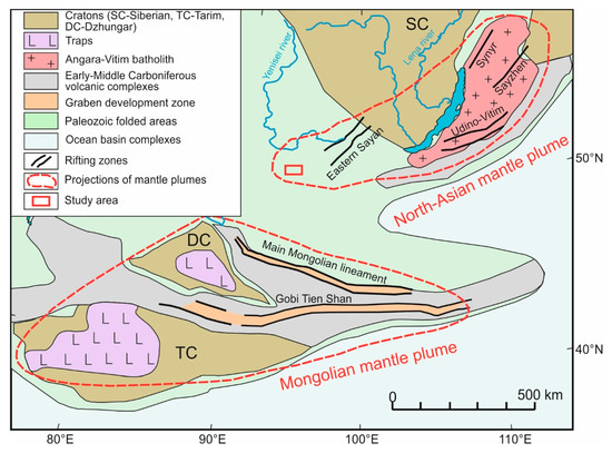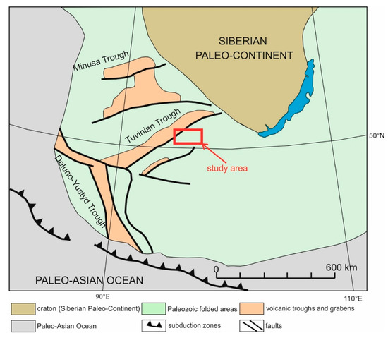 2. Berzin, N.A.; Kungurtsev, L.V. Geodynamic interpretation of Altai–Sayan Geological complexes. Russ. Geol. Geophys. 1996, 37, 56–73. [Google Scholar]