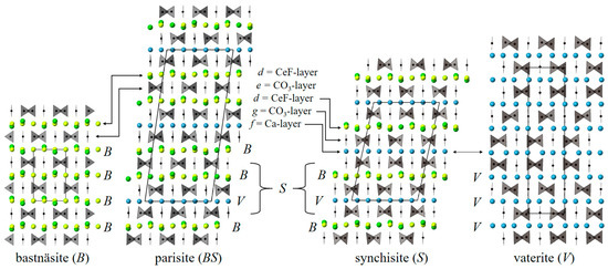 - Capitani, G. HRTEM investigation of bastnäsite–parisite intergrowths from Mount Malosa (Malawi): Ordered sequences, polysomatic faults, polytypic disorder, and a new parisite-(Ce) polymorph. Eur. J. Mineral. 2019, 31, 429–442. [Google Scholar] [CrossRef]