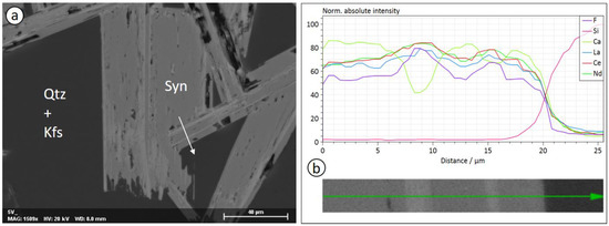 - Forster, H.-J. Synchysite-(Y)-synchysite-(Ce) solid solutions from Markersbach, Erzgebirge, Germany: REE and Th mobility during high-T alteration of highly fractionated aluminous A-type granites. Mineral. Petrol. 2001, 72, 259–280. [Google Scholar] [CrossRef]