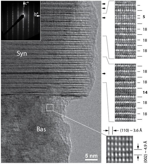 - Van Landuyt, J.; Amelinckx, S. Multiple beam direct lattice imaging of new mixed-layer compounds of the bastnäsite-synchysite series. Am. Mineral. 1975, 60, 351–358. [Google Scholar]