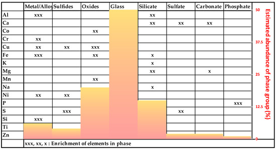 The composition of the investigated MSWI-BA samples is very complex and can be divided into the following phase groups (Figure 5).