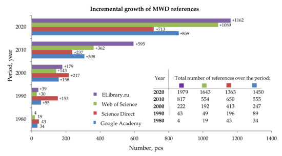 Analysis of scientometric databases (Figure 1) for the last 20 years demonstrates significant growth of direct references and implicitly related literature on MWD development, which indicates a keen interest among the scientific society and mining engineers.