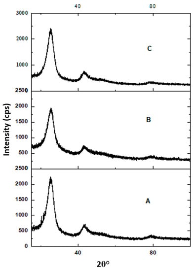 - Girgis, B.S.; Temerk, Y.M.; Gadelrab, M.M.; Abdullah, I.D. X-ray diffraction patterns of activated carbons prepared under various conditions. Carbon Lett. 2007, 8, 95–100. [Google Scholar] [CrossRef]