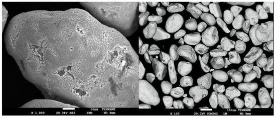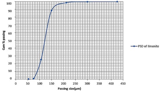 The ilmenite samples used in this study were ilmenite beach placer sands collected from Richards Bay Minerals in South Africa. The particle size distribution of the sands was determined using the Malvern particle size analyzer and confirmed by the standard laboratory Tyler series sieves as both methods determine the cut size. The X-ray fluorescence spectrometry technique was used to determine the ilmenite sands’ chemical composition, while the phases within the sand were identified using the X-Ray diffractometer technique using the PANalytical Empyrean Powder X-ray diffraction. The morphologies and the backscattered electrons of the sand were observed using a Jeol HR-SEM (model JSM 7600F, JEOL, Akishima, Japan), and the elemental compositions were mapped using energy dispersive spectrometry (EDS) techniques.