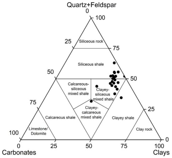 Ternary diagram of lithofacies classification of Longmaxi shales. The base map is from Wang et al. (2016) [46].