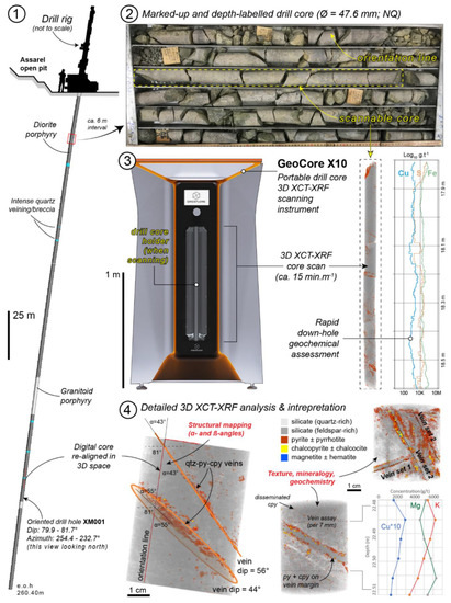 - Gray, C.A.; Rythoven, A.D. A Comparative Study of Porphyry-Type Copper Deposit Mineralogies by Portable X-ray Fluorescence and Optical Petrography. Minerals 2020, 10, 431. [Google Scholar] [CrossRef]